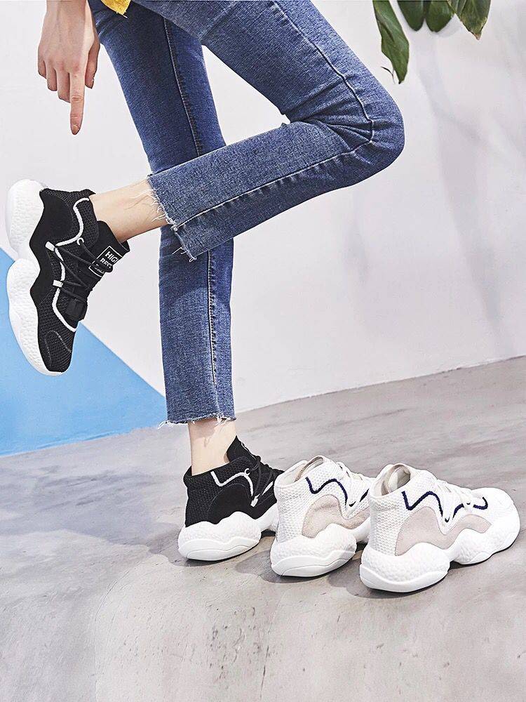 2018新款厚底中跟老爹鞋透气网面运动鞋ins超火系带真皮学生女鞋
