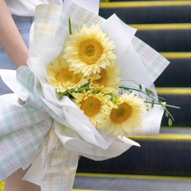 奶油向日葵鲜花花束 中秋节礼物 清新温柔基地直供