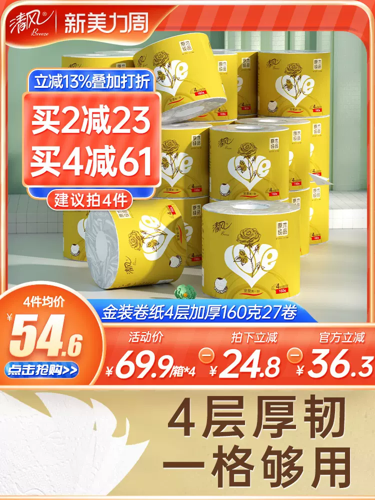 清风纸巾抽纸整箱原木纯品金装纸抽家用面巾纸实惠装卫生纸餐巾纸