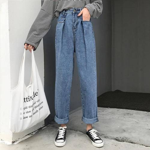 2020春夏新款批发松紧腰高腰牛仔裤女宽松直筒显瘦阔腿长裤
