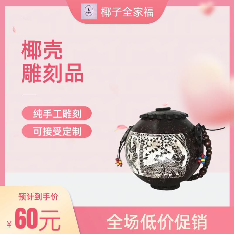 手工雕刻椰子壳饰品,可定制,你出图我出艺,来图定制 60.00 已售:1件