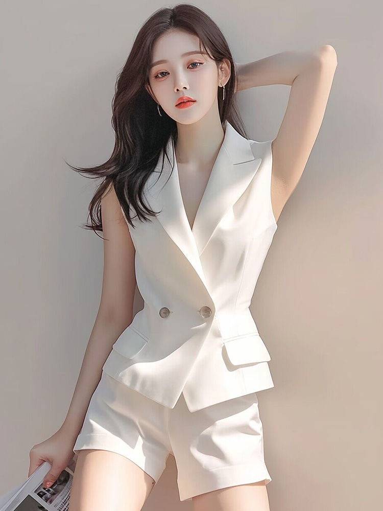 法式职业套装女夏季搭配一整套干练气质小个子西装马甲短裤两件套
