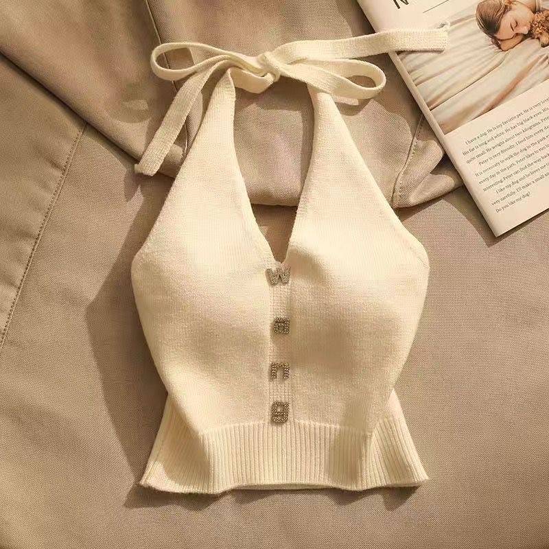新中式夏季新款设计感露肩短款冰丝辣妹挂脖吊带内搭外穿美背修身