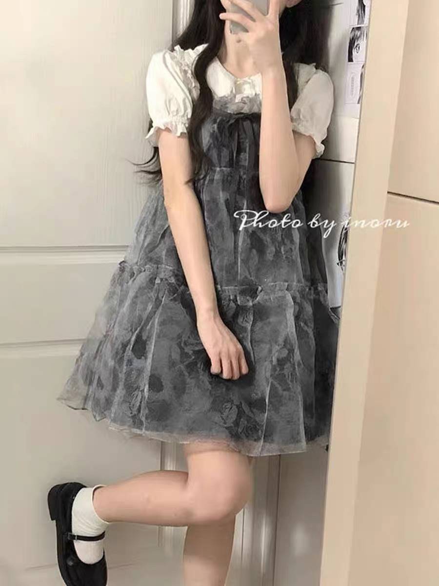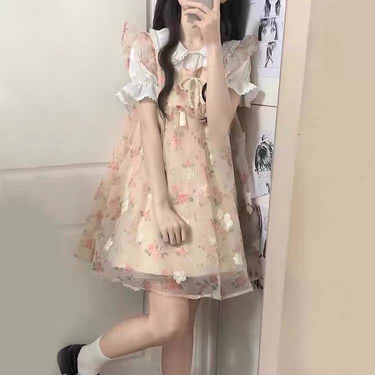 乐町气质复古连衣裙2021新款春女装奶油蜜桃蝴蝶结连衣裙