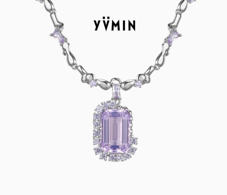 YVMIN尤目 涟漪系列 液化紫色菱形宝石吊坠S925银项链