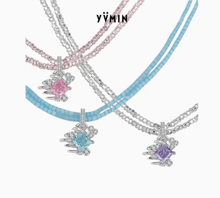 YVMIN尤目 涟漪系列2022春夏新品 菱形宝石液化吊坠多色双层项链