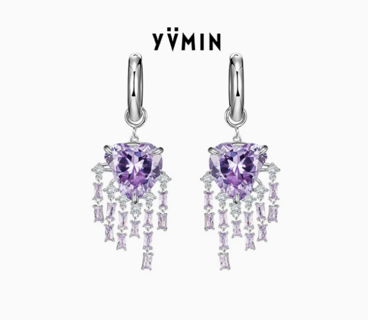 YVMIN尤目 涟漪系列2022新品 菱形紫色宝石液化耳钉