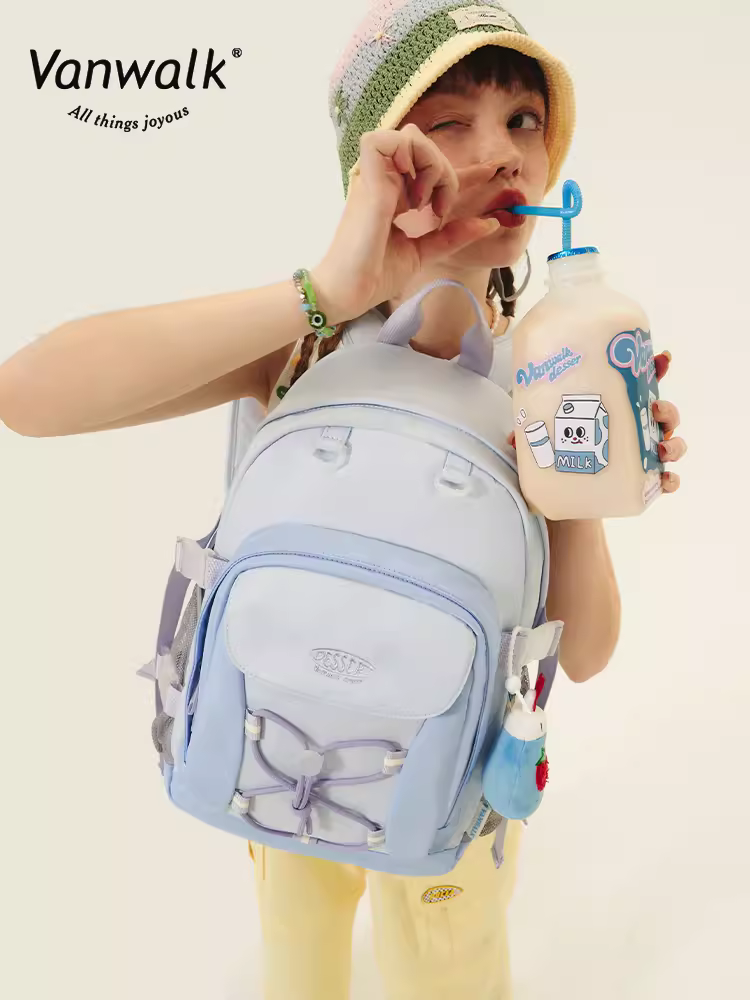 VANWALK夏午茶 原创奶油少女织带双肩包可爱挂件休闲高中学生书包