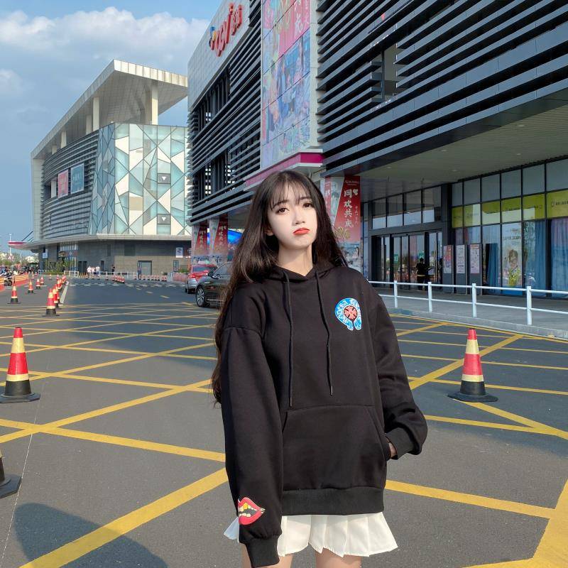 秋装女2019新款卫衣长款连帽衫女拼接假两件学生卫衣女