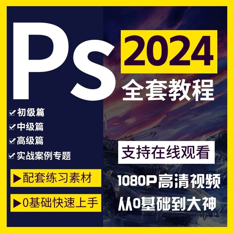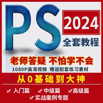 Ps教程零基础2024photoshop视频课程美工平面设计人像修图抠海报