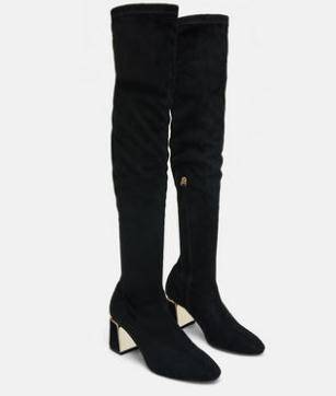 ZARA女鞋黑色高跟尖头长靴16000301040