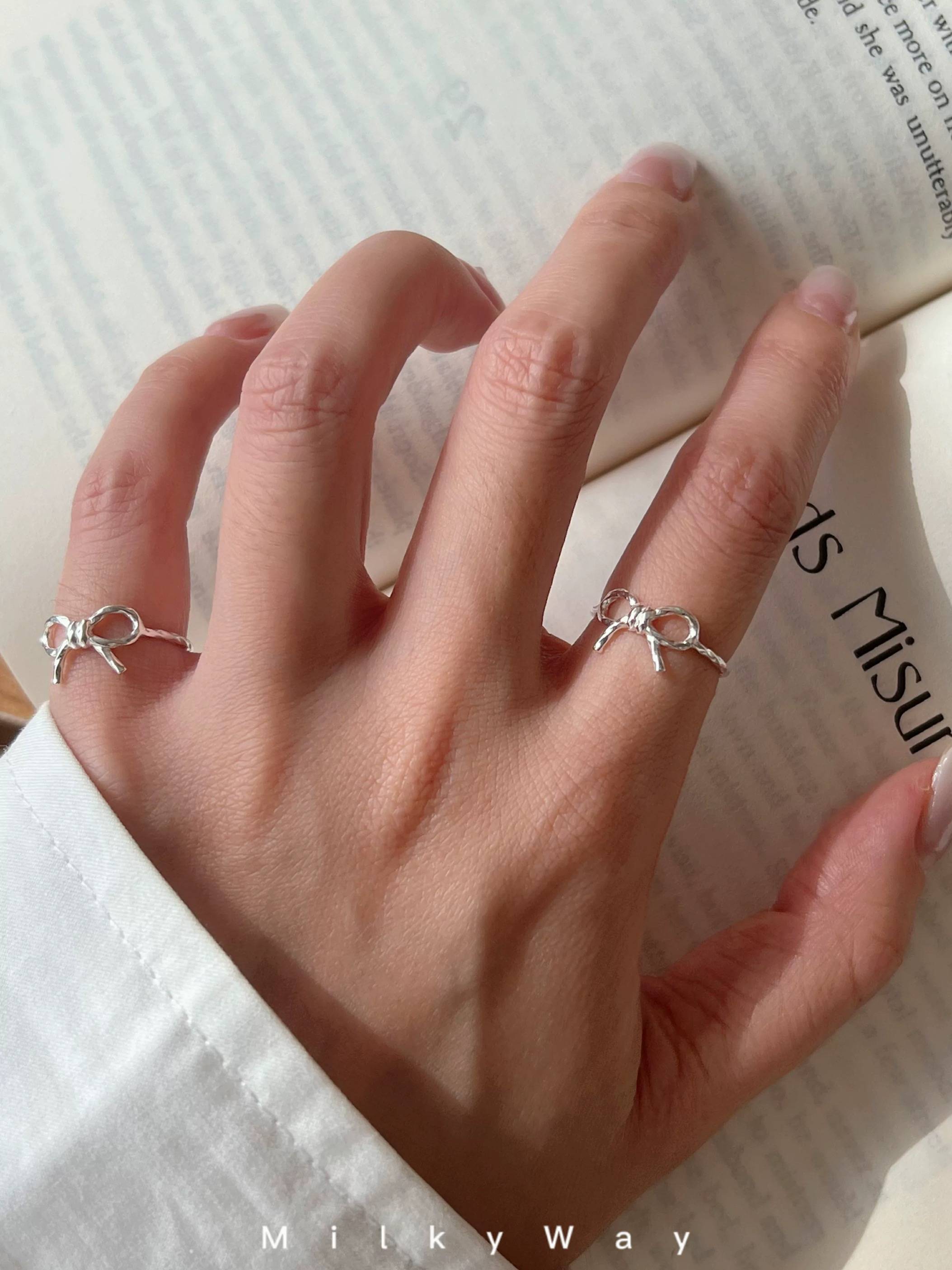 有迹MilkyWay甜美蝴蝶结褶皱尾戒戒指通体s925纯银开口少女芭蕾风