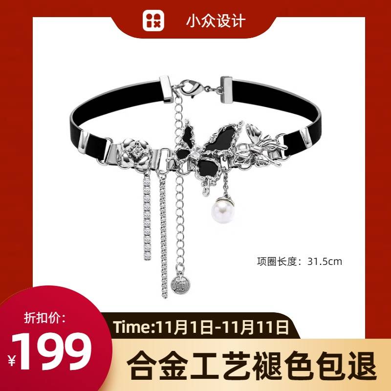 C+潮牌暗黑choker系列小众百搭高级重工轻奢个性蝴蝶珍珠项链配饰