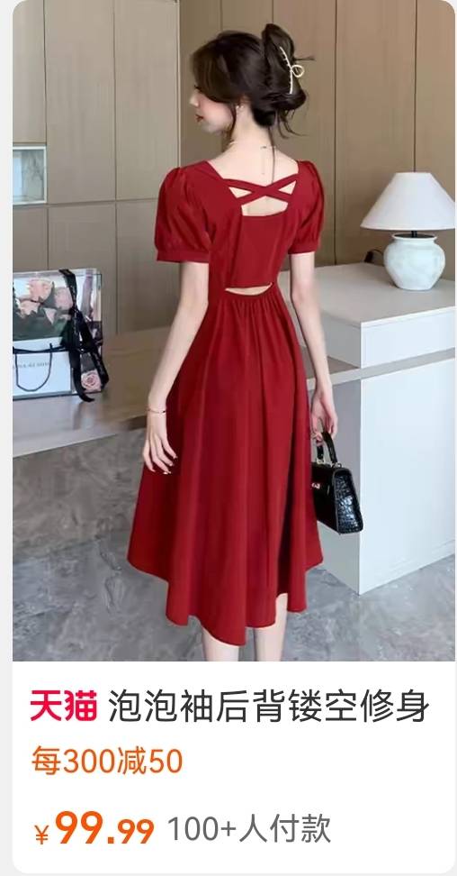 2024年全国包邮赫本风红色镂空露背连衣群