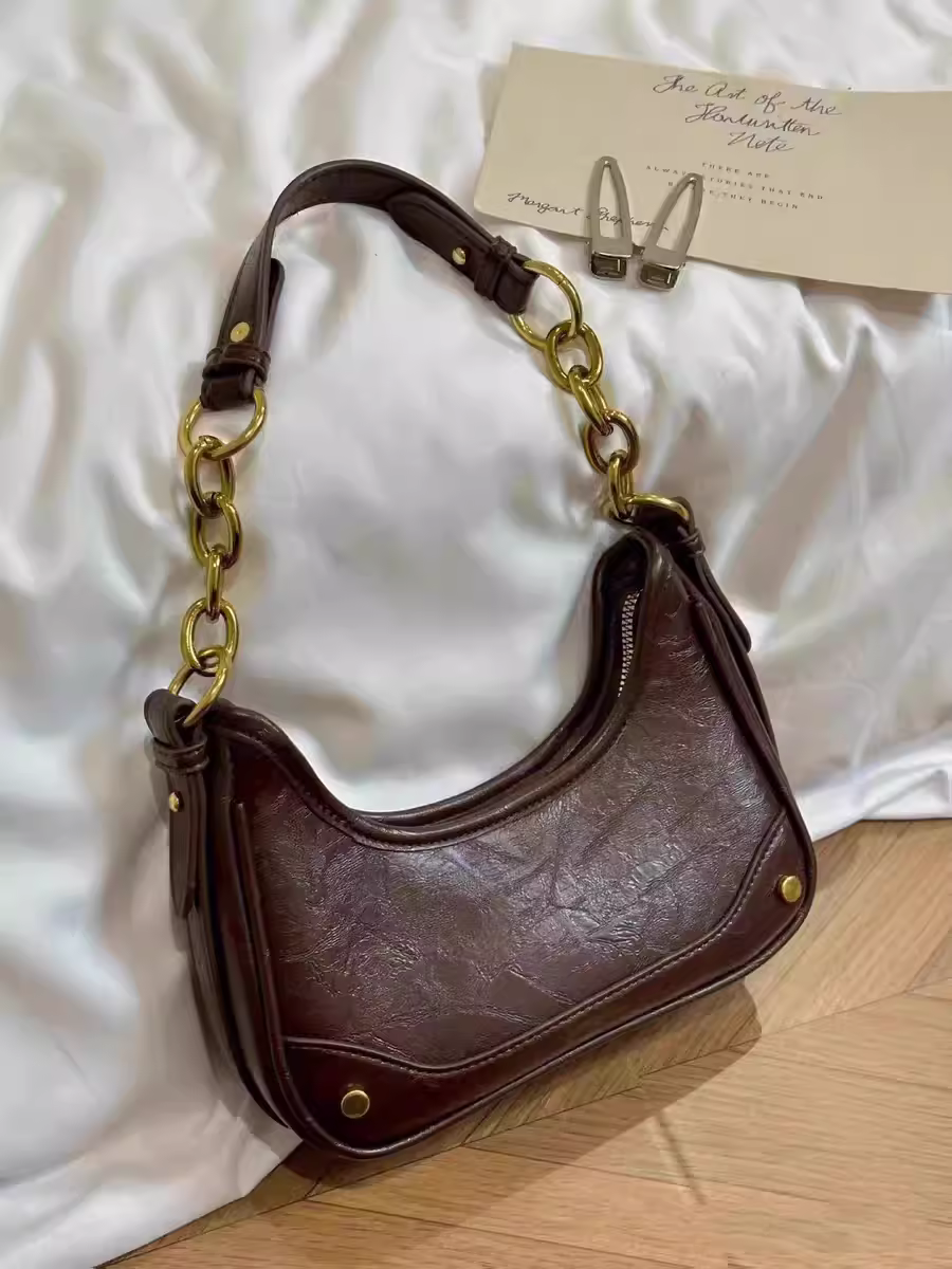 美拉德复古腋下包包女2024新款机车包真皮单肩斜挎包
