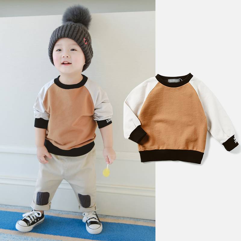 聿珹家2018新款婴儿秋装纯棉套头卫衣男童长袖上衣儿童外套简约款