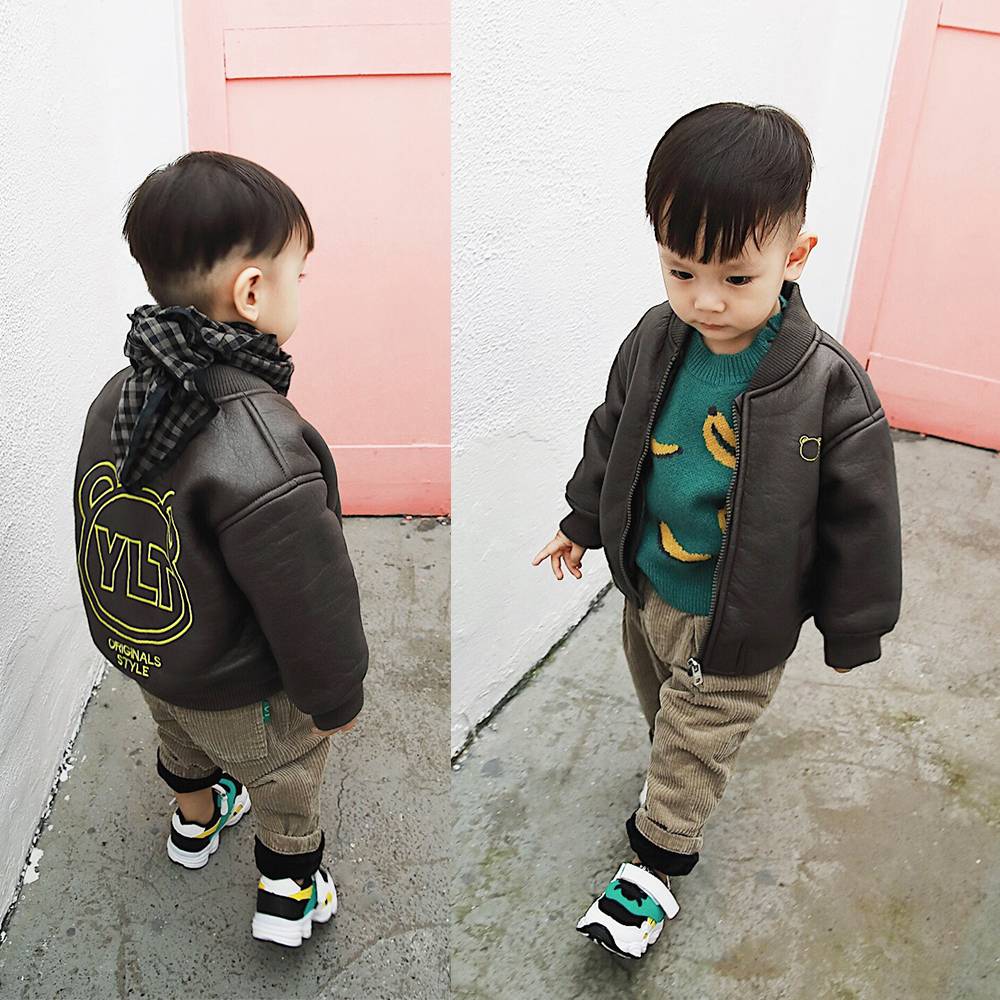 聿珹家宝宝加绒帅气皮衣2018秋装新款男童加厚外套冬上衣男童长袖