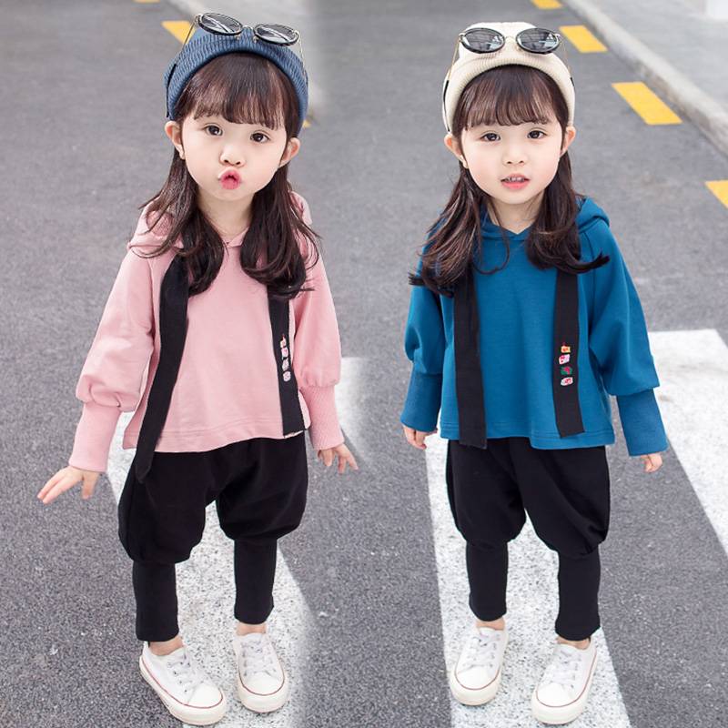 聿珹家2018新款女童卫衣套装纯色春秋韩版潮服洋气秋装长袖带帽子