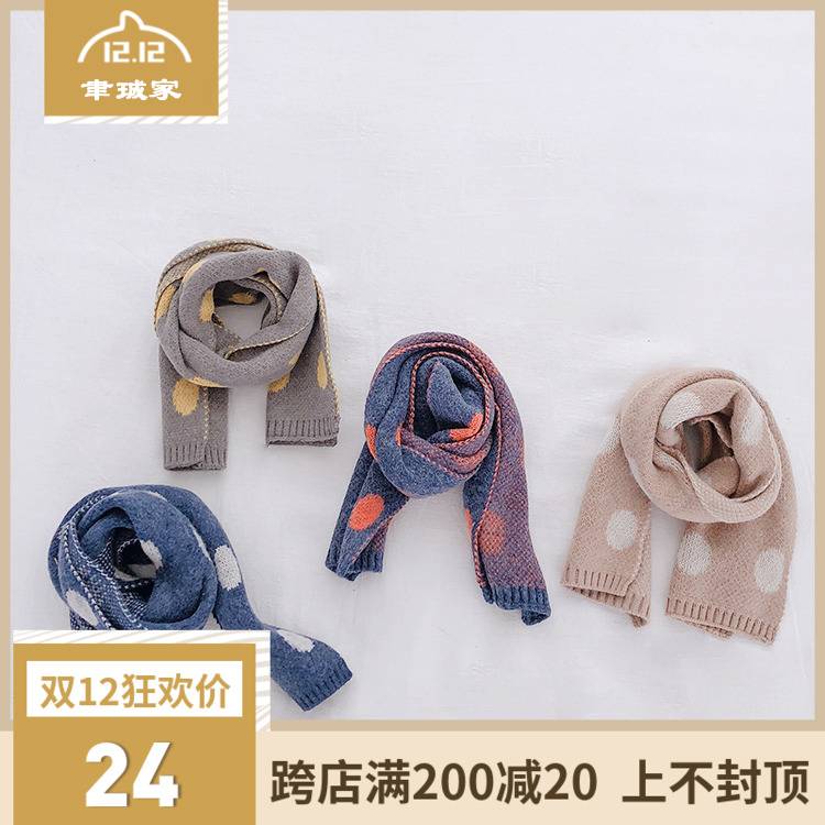 聿珹家男女童秋冬季波点图气质韩版围巾宝宝保暖护脖针织毛线围脖