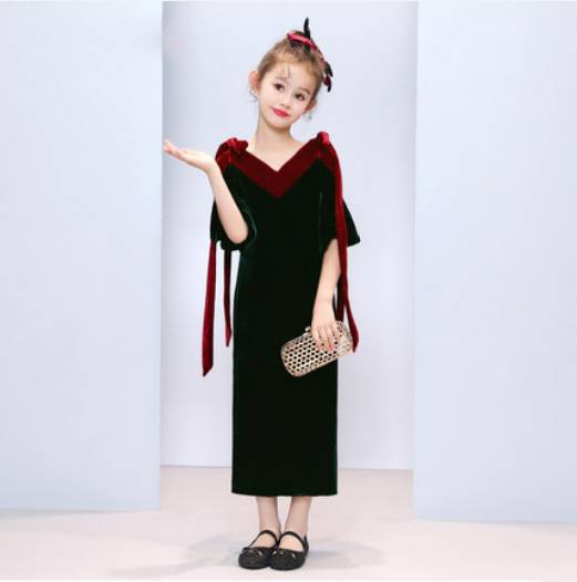 女童2018新款丝绒儿童高端礼服圣诞节走秀表演小主持人钢琴演出服