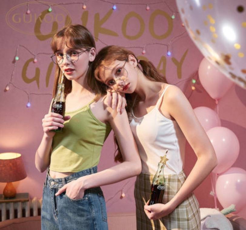 港味chic复古字母印花针织吊带背心女夏短款打底衫