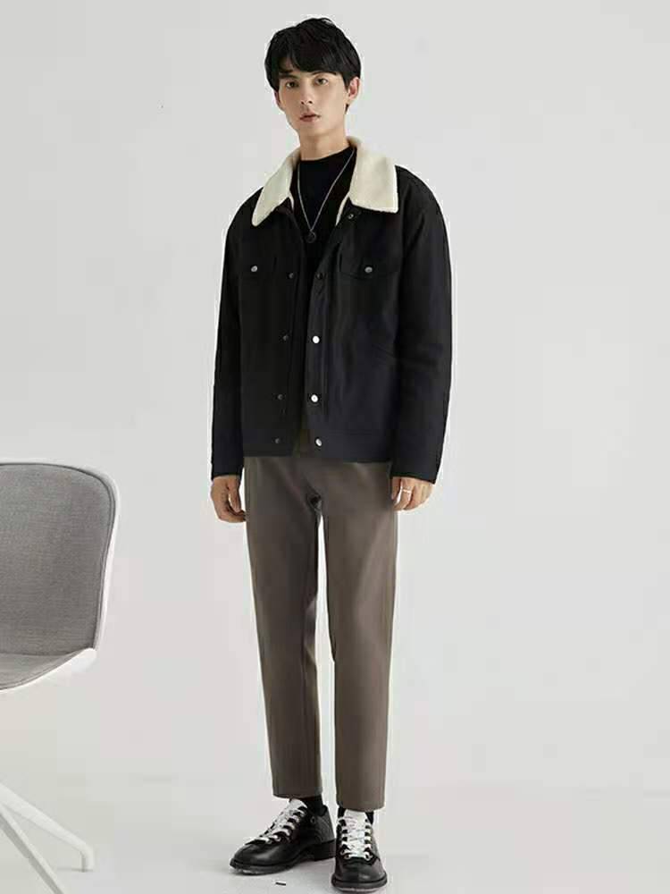 【储格】羊羔毛工装夹克男短款落肩翻领男士秋冬季帅气外套上衣