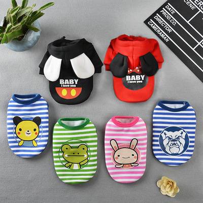秋冬装宠物衣服亮色条纹卫衣泰迪比熊法斗带帽卫衣狗衣服猫衣服