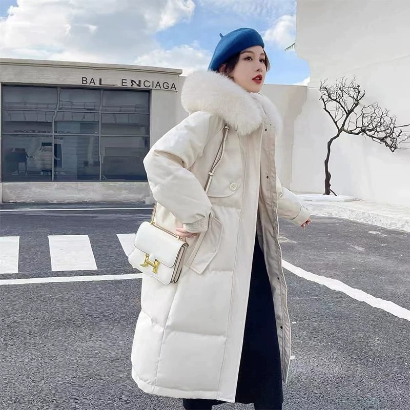 长款羽绒服女款端女装2023年新款韩版嘉兴平湖白鸭绒羽绒服工厂