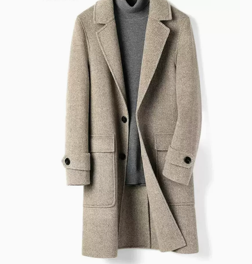 新款双面100%羊毛呢大衣男秋冬外套中长款加厚桑蚕丝内胆高端风衣