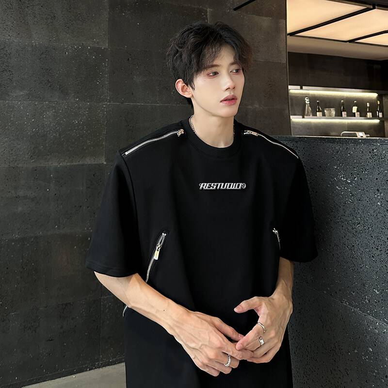短袖t恤男水洗做旧美式高街潮牌宽松黑色夏季男生半袖