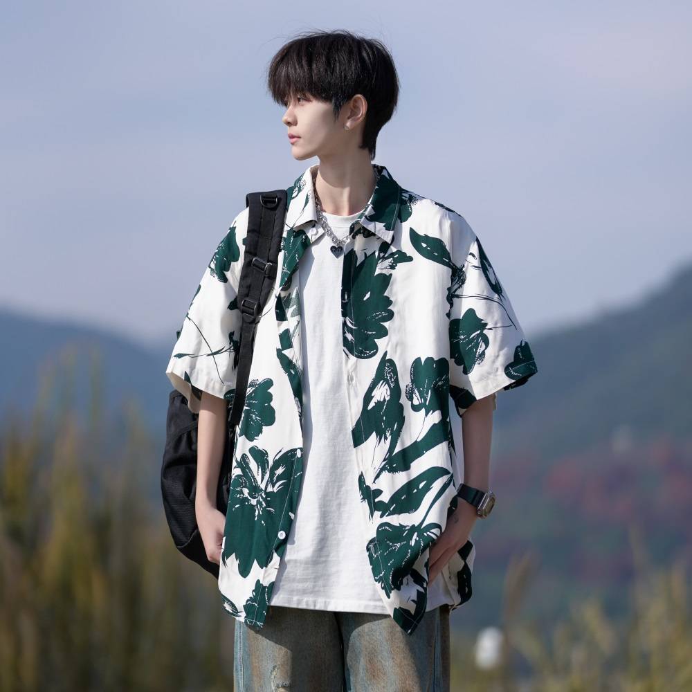老虎竹子发泡印花短袖T恤男士打底衫潮牌情侣休闲上衣