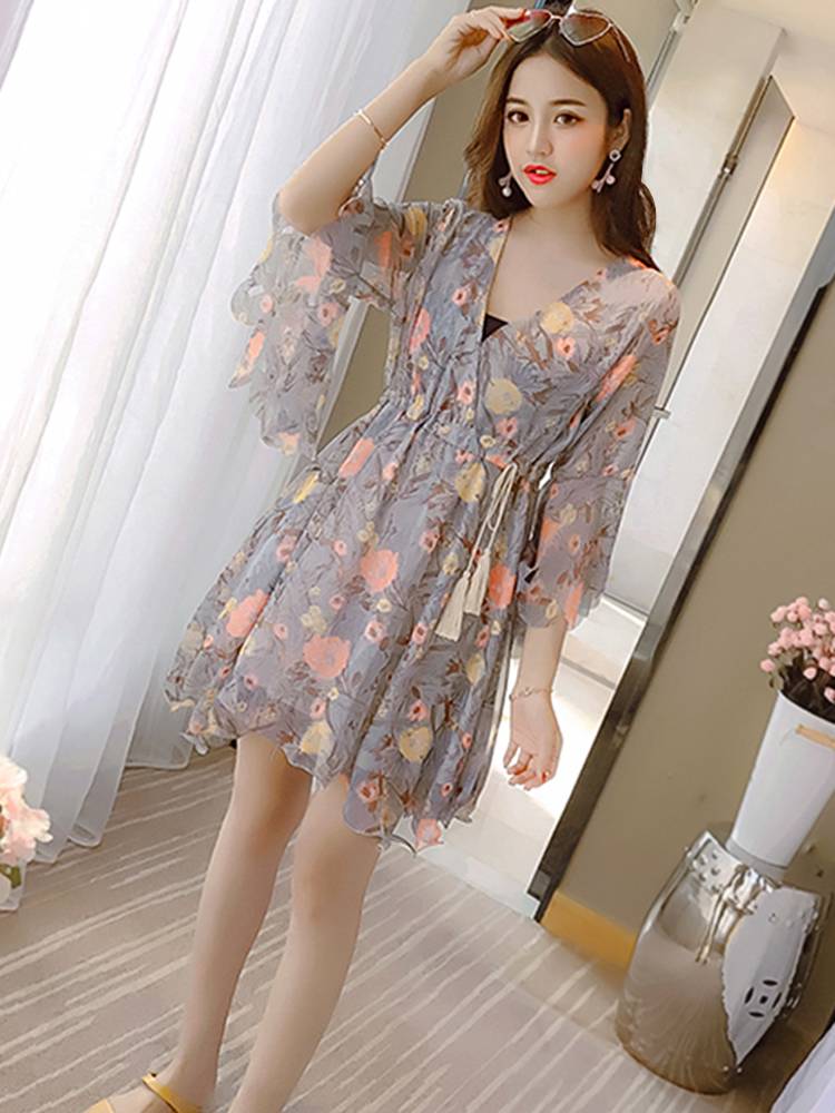 宝宝夏季新款田园风小飞袖连衣裙儿童雏菊吊带爬服哈衣