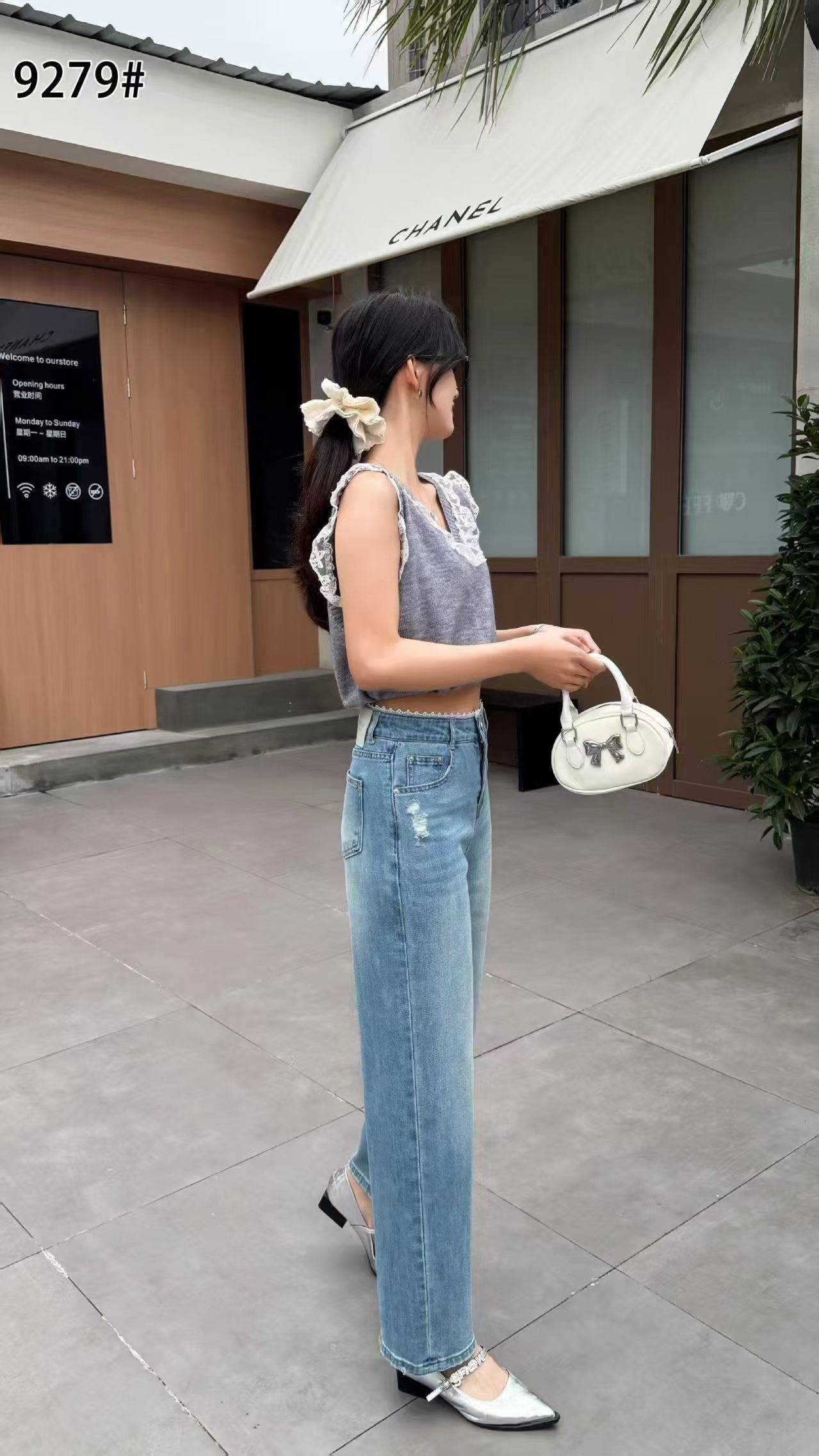 小个仔浅色水洗牛仔裤