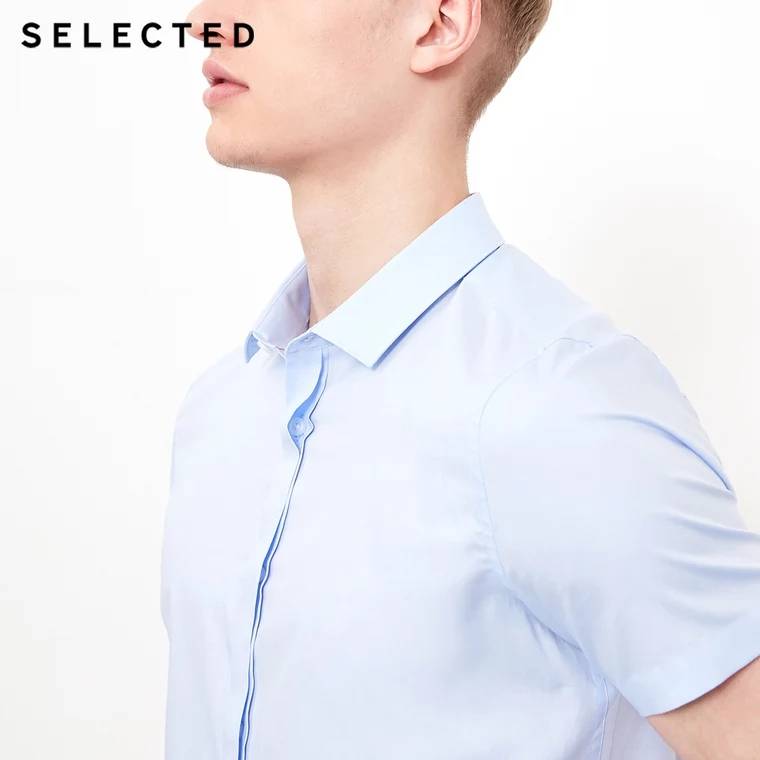 SELECTED思莱德新款男纯棉修身纯色短袖衬衫修身简约
