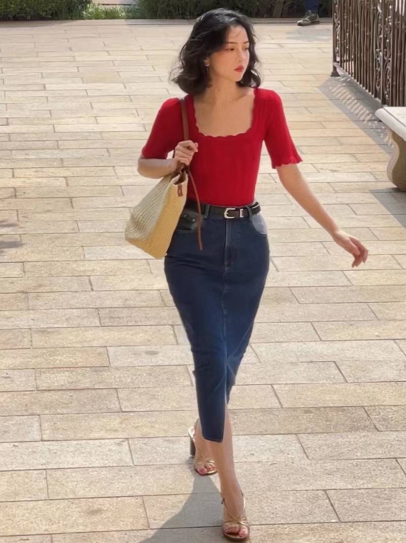 开叉半身牛仔裙 158.00 已售:0件