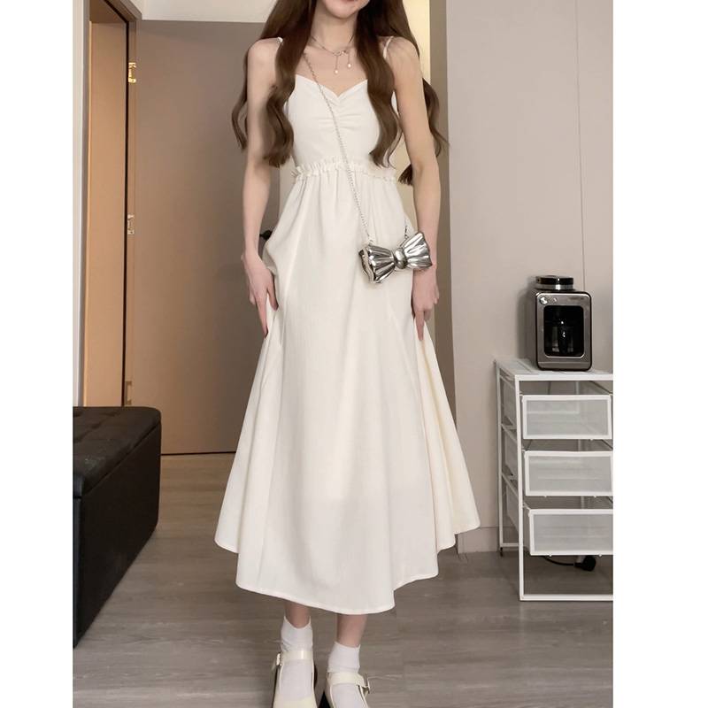 法式白色无袖吊带连衣裙女夏季2023新款小个子显瘦气质长裙子