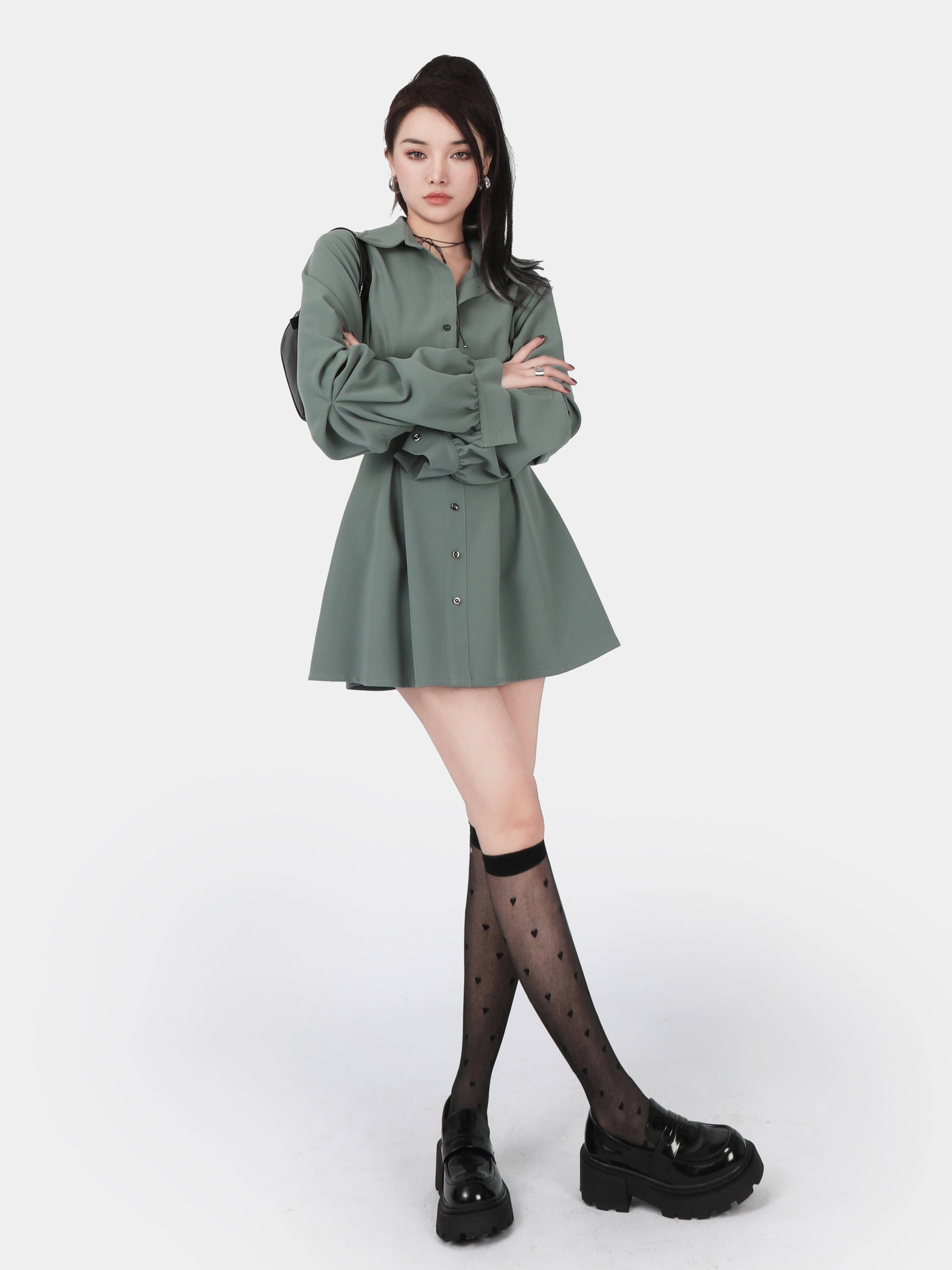 精致可人儿 法式收腰短款连衣裙衬衫裙子a字裙小黑裙女