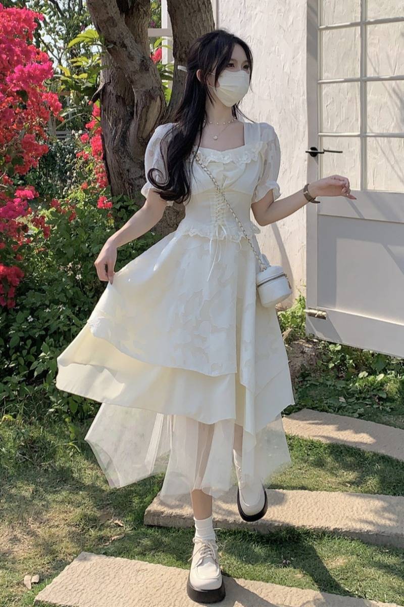 2023年新款设计感不规则短袖连衣裙女装法式小众甜美茶歇裙子