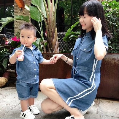 亲子装夏装2018新款潮全家装套装一家三口装四口母子装母女连衣裙