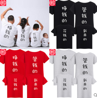 挣钱的管钱的花钱的亲子装夏装一家三口四口2018新款短袖t恤