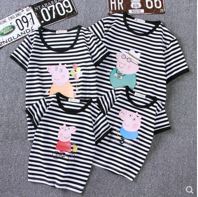 亲子装夏装2018新款潮 全家装一家三口小猪佩奇短袖T恤母女装春装