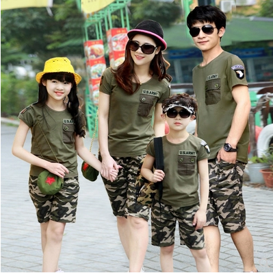 亲子装夏装全家装2018新款潮母子母女装一家三口春装2017迷彩套装