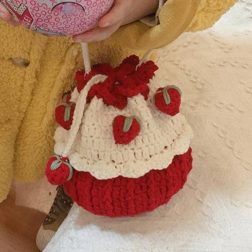 手工编织草莓蛋糕包包 DIY自制