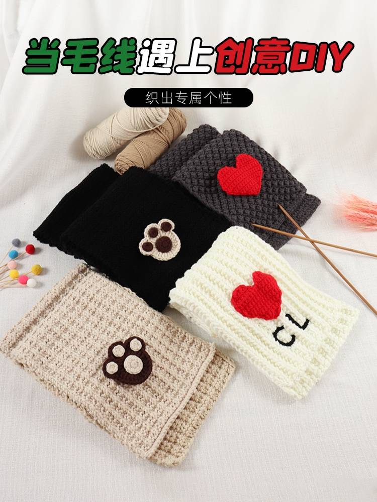 手工编织毛线围巾 DIY自织爱心围巾送男女朋友