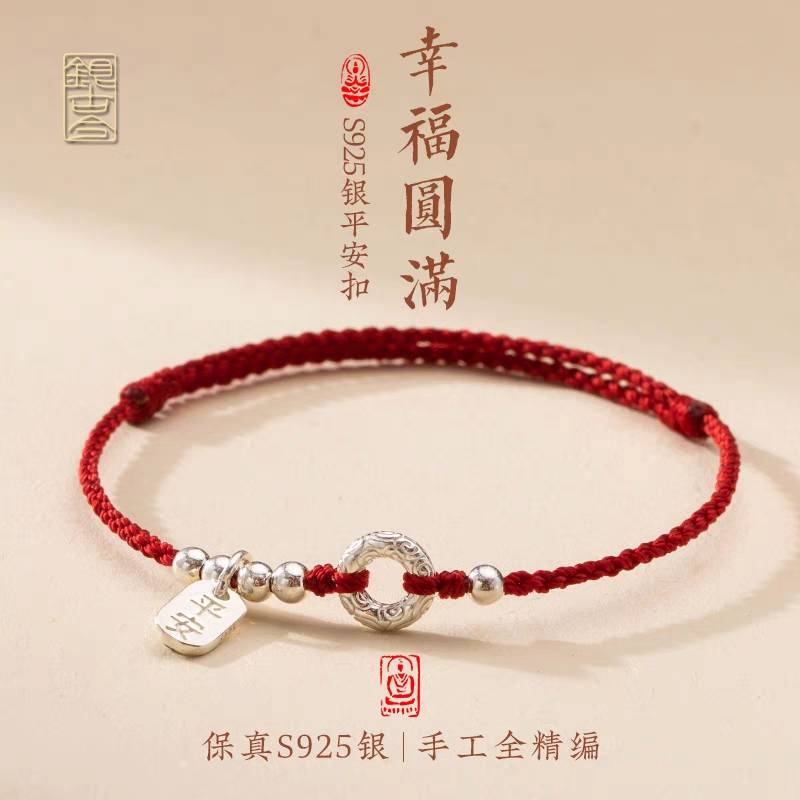 红绳手链纯银手工编织平安扣小众礼物