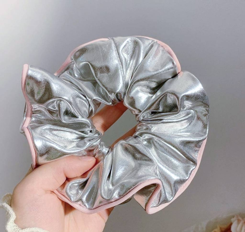 春季新款头饰法式褶皱荷叶边大肠圈双层缎面布艺发圈芭蕾风