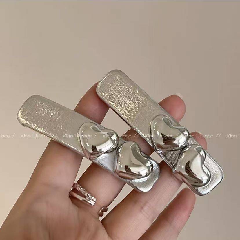 简约爱心金属发夹女2023新款前额刘海夹侧边夹银色百搭发卡一字夹