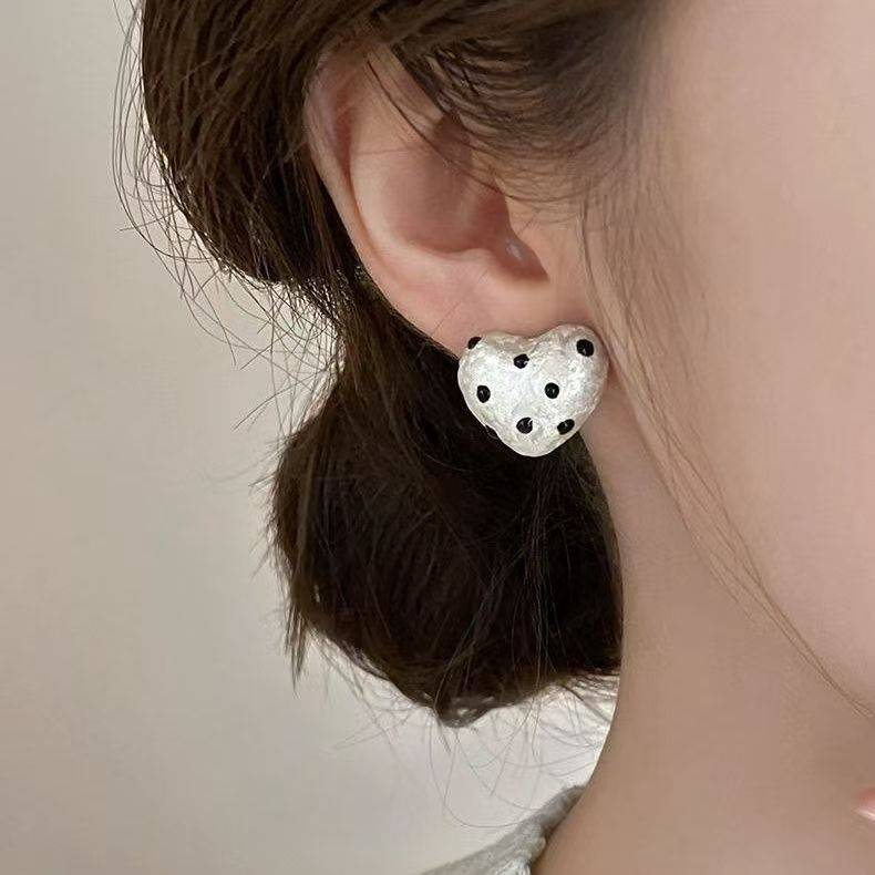 温柔气质棉花珍珠波点爱心耳钉女轻奢高级感耳环小众设计新款耳饰