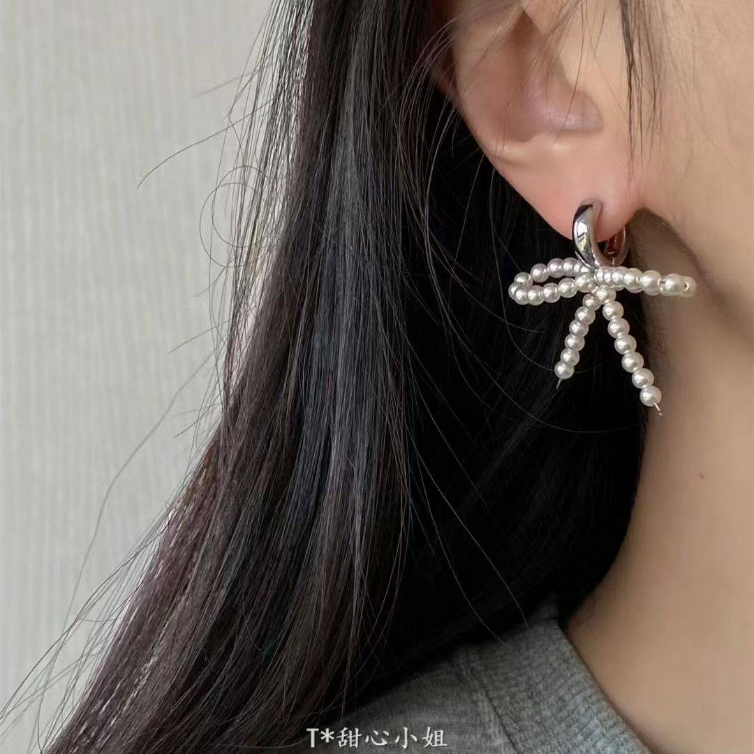芭蕾少女 珍珠蝴蝶结耳扣少女心清冷高级感耳夹无耳洞新款耳饰女