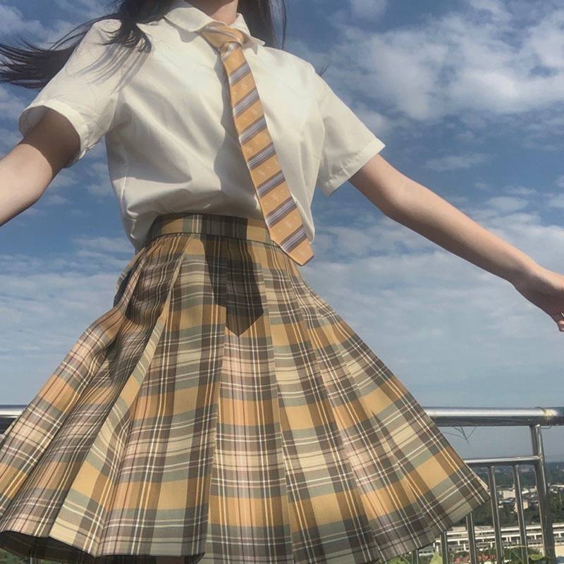 日式正统jk制服裙校供感褐色格子裙学院风百褶裙半身裙